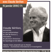 Venez à la rencontre de Claude Sérillon, journaliste, ancien présentateur du 20h de France 2 en Amphi Théry le 15 Janvier 2020 à 17h. Master Class gratuite et ouverte à tous, organisée par le Master Histoire-Journalisme international & investigation de la Faculté des Lettres & Sciences Humaines (FLSH) de…
