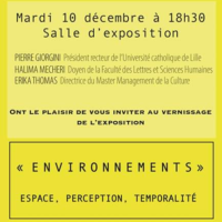 Les étudiants du Master 1 et 2 Management de la Culture de la Faculté des Lettres et Sciences Humaines sont ravis de vous convier au vernissage de l’exposition « Environnements : espace, perception, temporalité » le mardi 10 décembre à 18h30 en Salle d’exposition de l’Hôtel Académique, 60 Boulevard Vauban à Lille.…